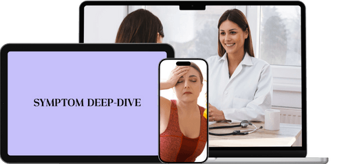 → 1:1 discussion covering your symptoms, concerns & questions in detail. ($188 Value)